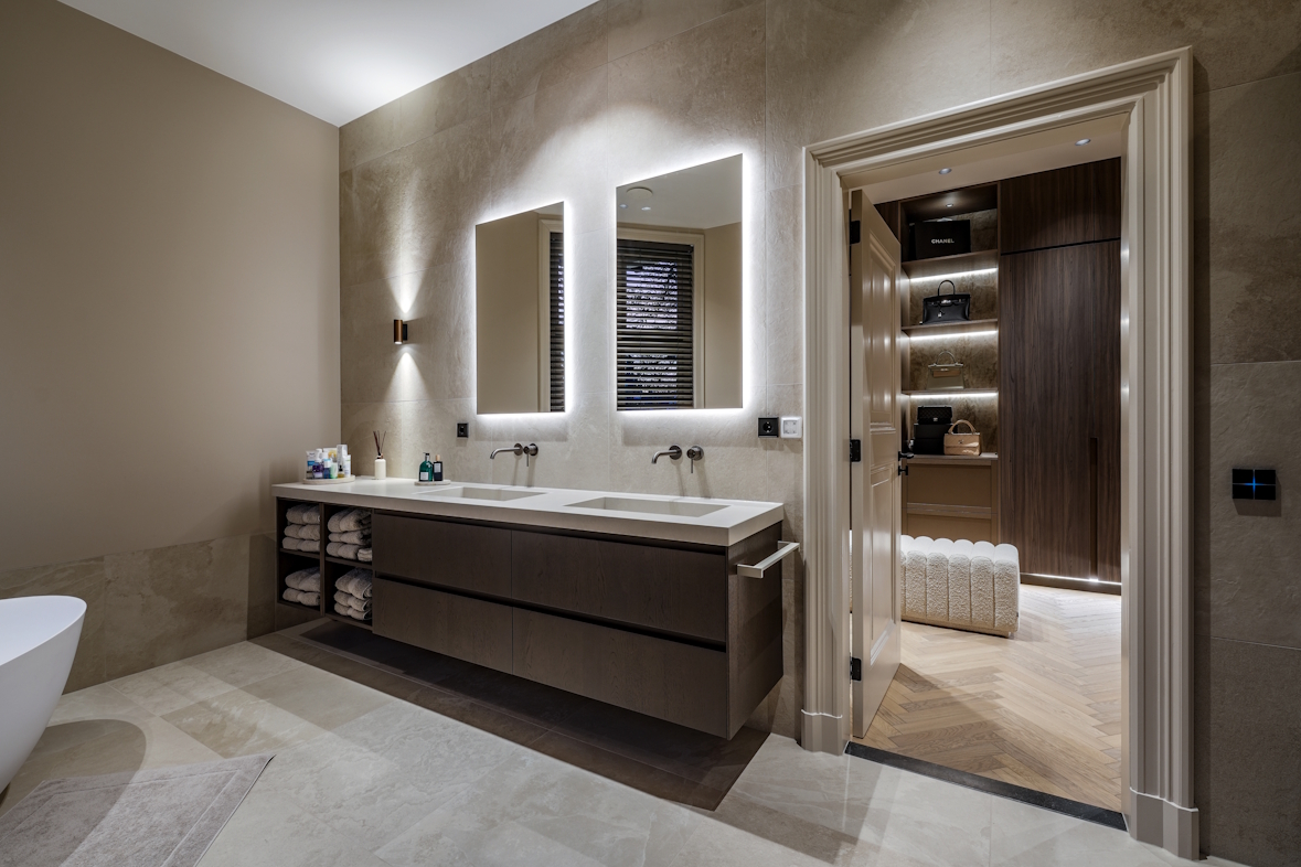 Voor de basis en de technische verlichting heeft MoreSenz onder andere de merken Fengari en Wever & Ducré toegepast. De prachtige, decoratieve armaturen komen van onder andere Bocci en Henge. Het luxe smarthome domotica systeem is van het merk Basalte, bekend om haar prachtige design en gemakkelijke gebruikersinterface. De thuisbioscoop biedt een formidabele audio-ervaring dankzij het high-end Bowers & Wilkins 7 serie Dolby Atmos systeem. De JL subwoofers (in combinatie met een Arcam versterker) zorgen daarbij voor een krachtig voelbare geluidservaring. De films worden geprojecteerd door een haarscherpe JVC-beamer, op een 4k bioscoopscherm van Screen Research, voor een eerste klas kijkervaring.